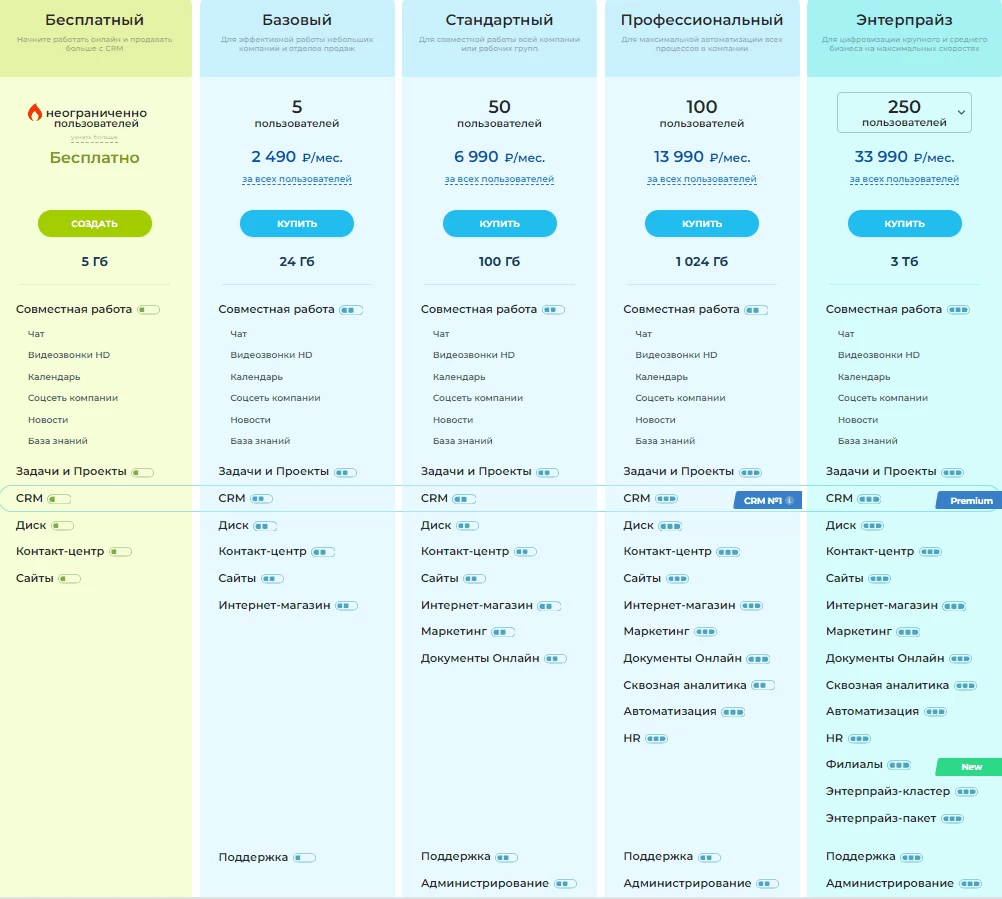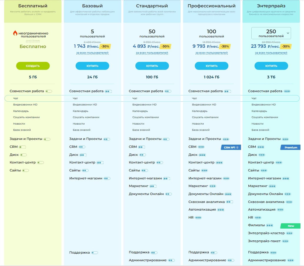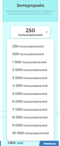 Энтерпрайз позволяет подключить к порталу от 250 до 10 000 сотрудников, а также работать с филиалами.