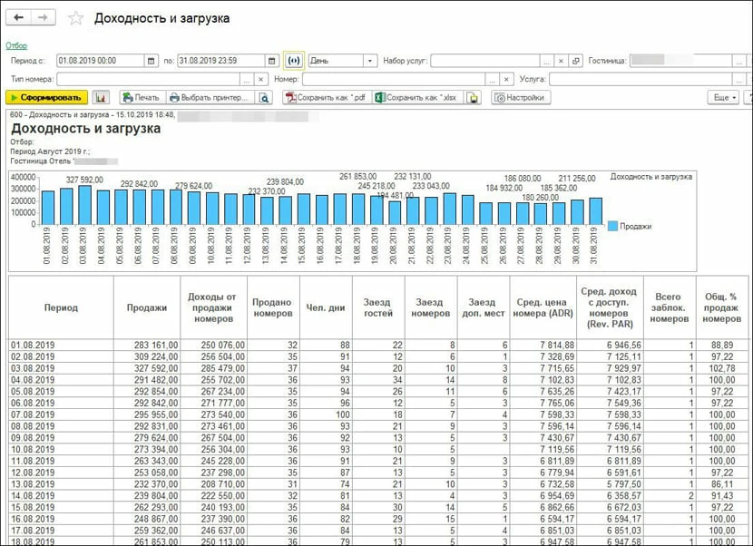 Отчет легко настраивать для удобного анализа работы отеля в разных разрезах деятельности. Для любого отчета можно настроить автоматическую рассылку по графику в формате Excel или pdf.