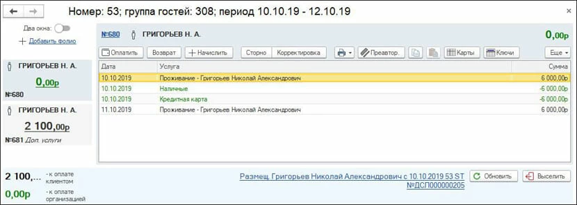 Система позволяет вести взаиморасчеты с гостями и контрагентами. Программа предусматривает гибкие настройки правил начисления счета, а также разделение всех счетов по видам услуг, суммам и срокам. Кроме этого программа учитывает глубину кредита и сумму нефискальных предавторизаций по карте гостя. Механизм оформления авансов прост, а операции проводятся через онлайн ККМ для соответствия 54-ФЗ. Все это позволяет сократить время оформления операций и исключить ошибки.