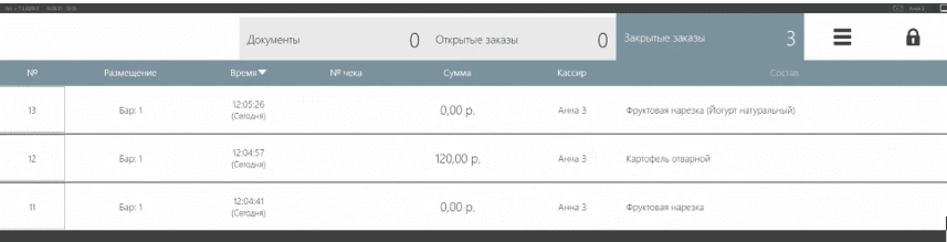 Во вкладке Закрытые заказы отображаются все заказы, которые были закрыты за текущую смену. Найдите в списке заказ, который нужно вернуть.