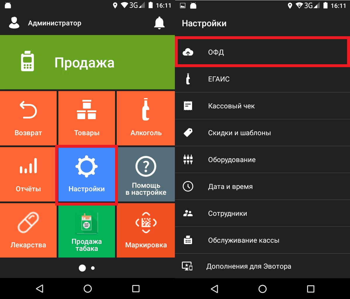 Для того, чтобы закрыть архив фискального накопителя на кассе Эвотор, зайдите в Настройки и перейдите по пункту меню ОФД.