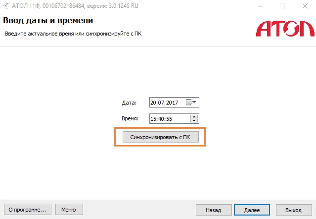 Чтобы корректно закрыть архив, вам нужно синхронизировать ККТ с временем компьютера. Для этого в новом окне нажмите кнопку Синхронизировать с ПК.